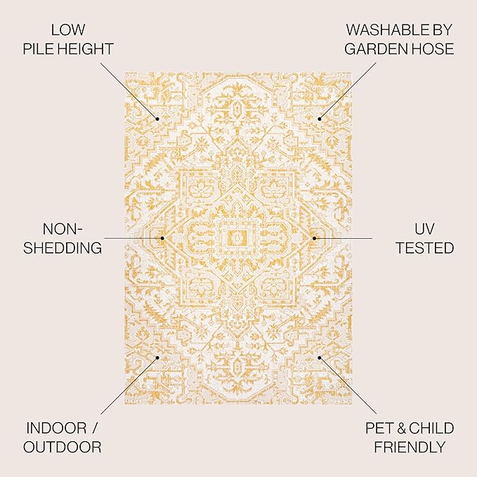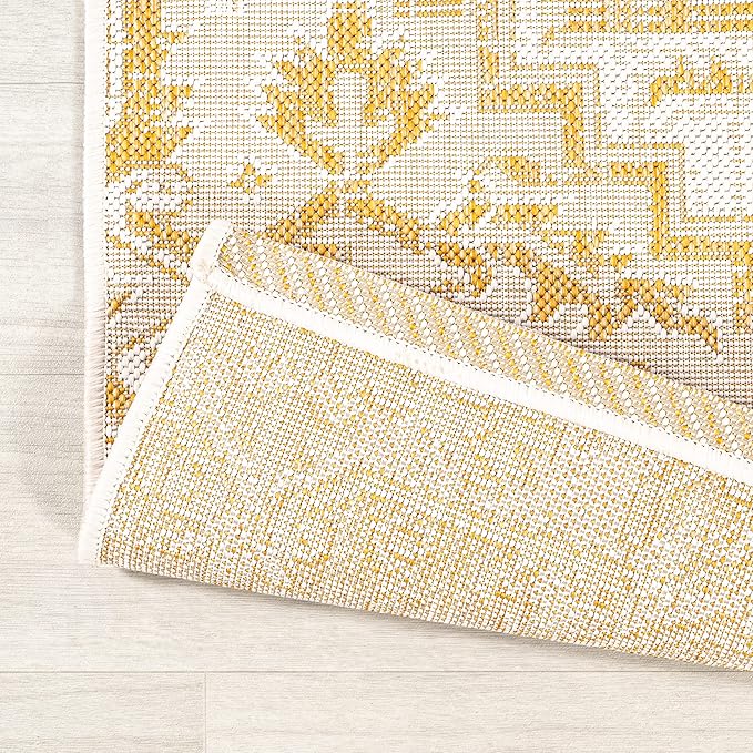 JONATHAN Y SMB105H-5SQ Estrella Bohemian Medallion Textured Weave Indoor Outdoor Area Rug, Coastal Traditional Transitional Easy Cleaning,Bedroom,Kitchen,Backyard,Patio, Cream/Yellow, 5' Square