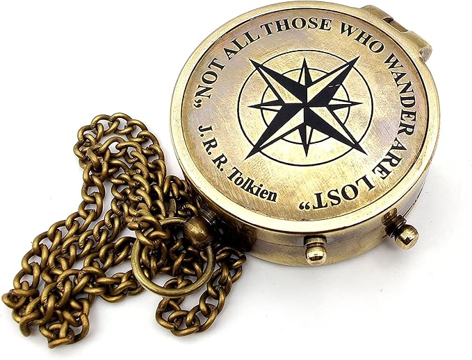 - Not All Those Who Wander are Lost engraved brass compass with real Leather case.