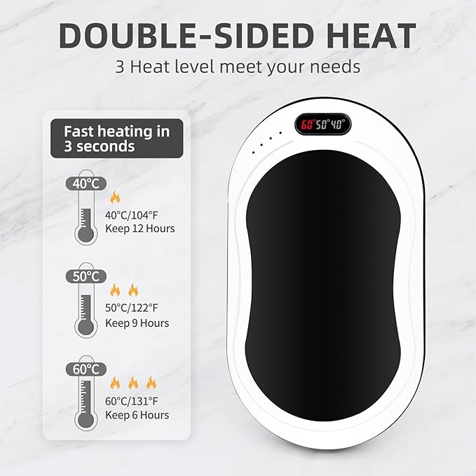 - LONG-LASTING BATTERY POWER: Equipped with a 10,000mAh lithium rechargeable battery and a convenient USB charging port, you can enjoy up to 12 hours of hand-warming and keep your electronic devices charged even when you move.
