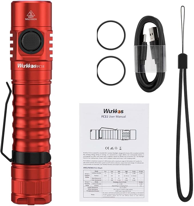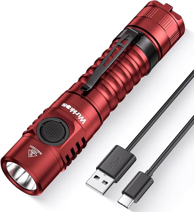 Wurkkos LED Flashlight Rechargeable Torch Max 1300Lumen High 90CRI EDC Light with USB C Charge Cable,Magnetic Tailcap, Memory Mode for Hiking, Camping, Dog Walking,IPX-7(Red-5000K)
