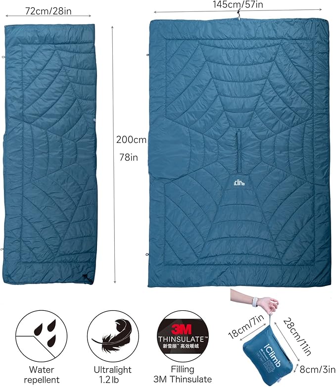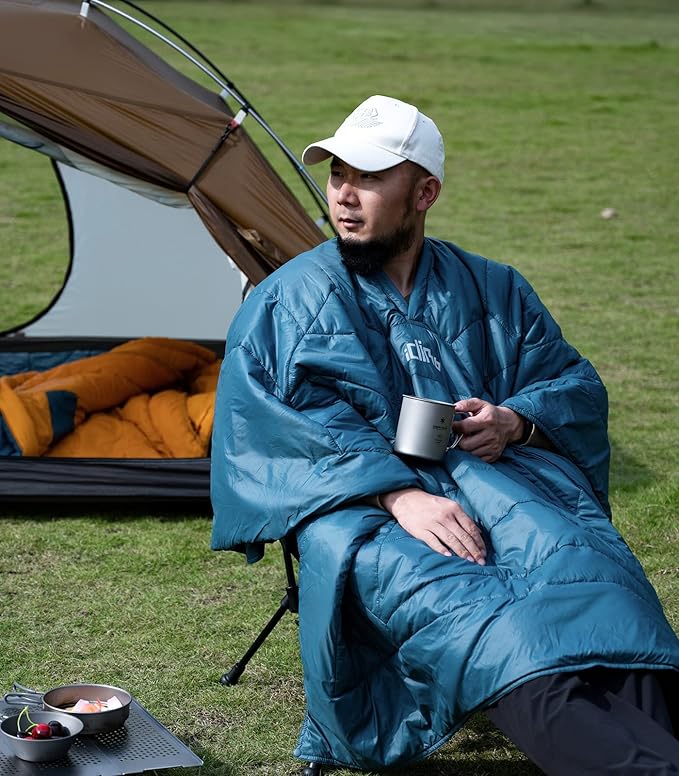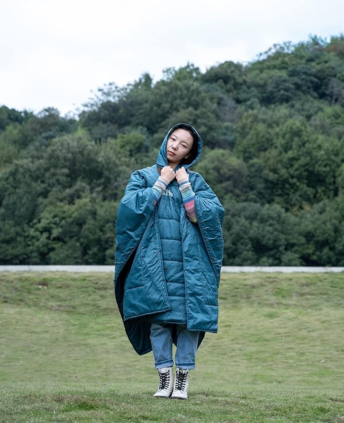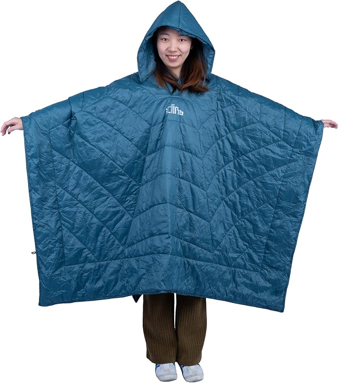 iClimb Hooded 3M Thinsulate Insulation Warm Camping Blanket Wearable Poncho Ultralight Compact (Blue)