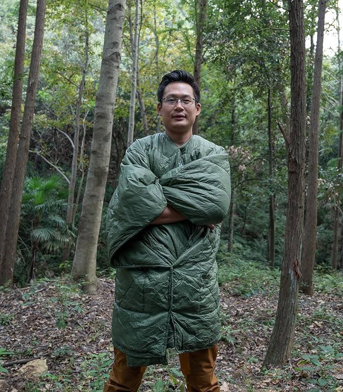 - Multifunctional. With the buttons, removable hood and elastic straps, this blanket can be used as quilt, wearable poncho, shawl, temporary sleeping bag; Put on the hood to cover your whole body, free hands to deal with your troubles. You can also put two blankets together and make it one two-person sleeping bag. Keep you cozy and warm while cooking meals, lying in hammocks, reading books, watching shows. sitting backyard, in the stadium, around the fire, or on your couch,