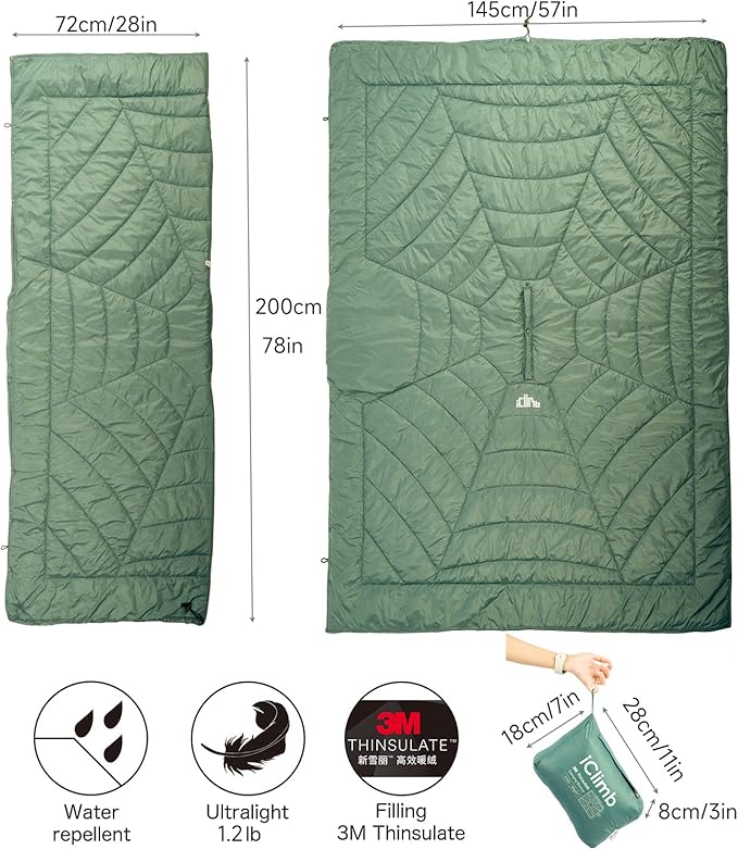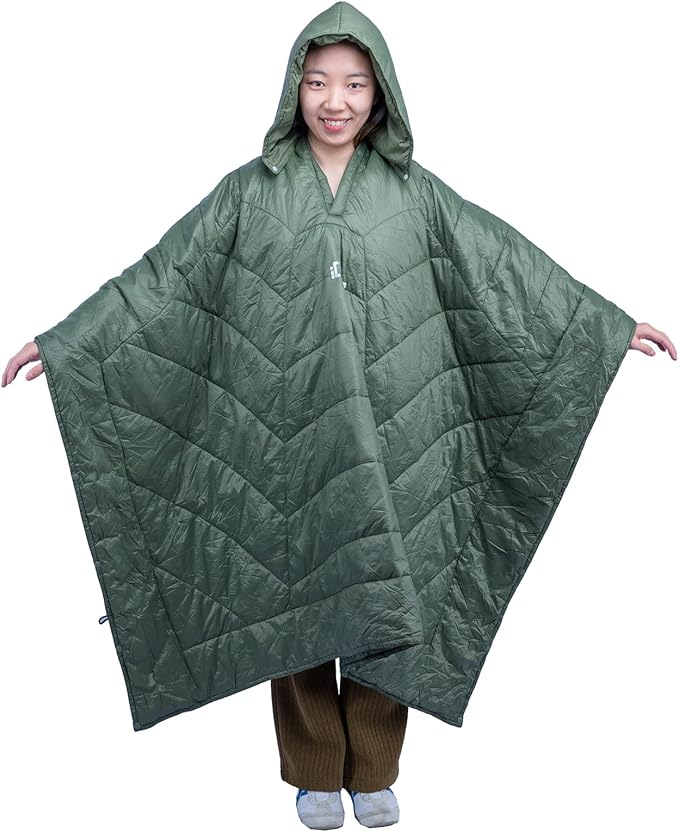iClimb Hooded 3M Thinsulate Insulation Warm Camping Blanket Wearable Poncho Ultralight Compact (Green)