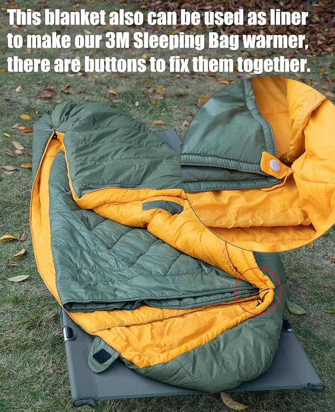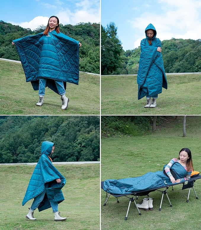 - Multifunctional. With the buttons, removable hood and elastic straps, this blanket can be used as quilt, wearable poncho, shawl, temporary sleeping bag; Put on the hood to cover your whole body, free hands to deal with your troubles. You can also put two blankets together and make it one two-person sleeping bag. Keep you cozy and warm while cooking meals, lying in hammocks, reading books, watching shows. sitting backyard, in the stadium, around the fire, or on your couch,