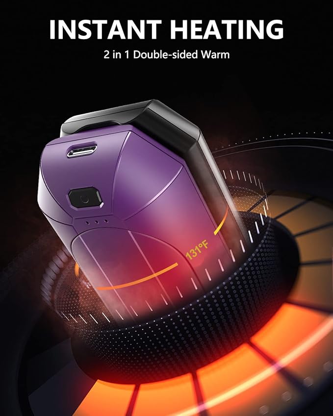 - 【Stable Instant Heat】No more longtime wait, electric hand warmers using the premium chip control system. Double-sided heat up to 131°F/55°C operating temperature with 1-second fast heating and 3 levels of temperature settings for adjustable and precise stable comfortable warmth.
