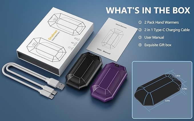 - 【2 Packs Hand Warmers】The 2 in 1 design hand warmers with a stylish look are portable and compact. Ergonomic design to make you more comfortable. Portable pocket designs fit for traveling, sports, football, hunting, golf, fishing, hiking, camping, skiing, etc.
