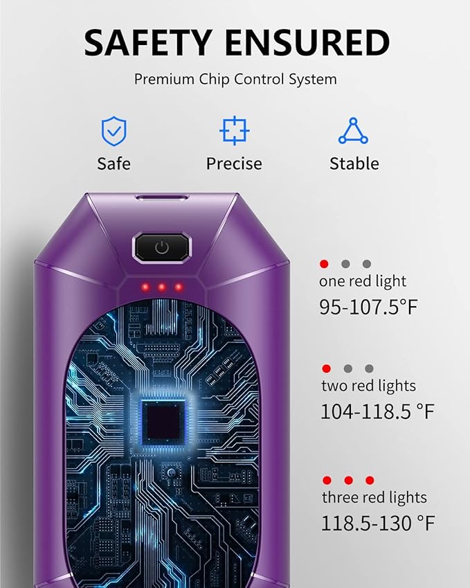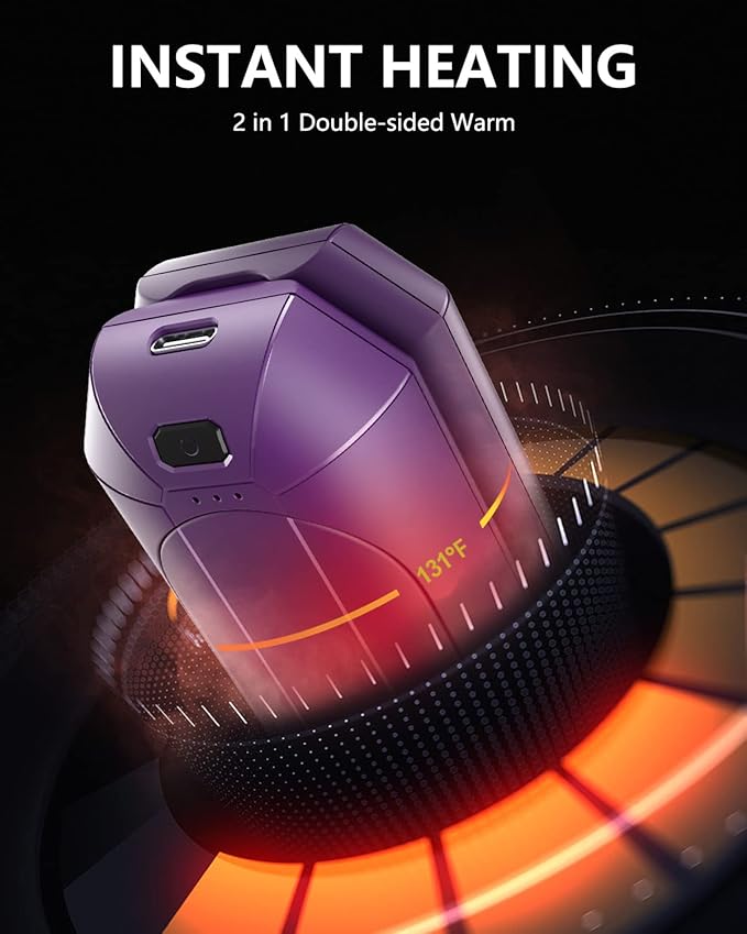 - 【Stable Instant Heat】No more longtime wait, electric hand warmers using the premium chip control system. Double-sided heat up to 131°F/55°C operating temperature with 1-second fast heating and 3 levels of temperature settings for adjustable and precise stable comfortable warmth.