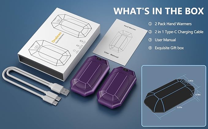 - 【Long Battery Life & Rechargeable】2 Packs 4000mAh hand warmer, a single full charge will last for 12 Hours, can meet the needs of one day's use. 3 levels indicator lights keep you informed of the remaining battery and heating status, Perfectly meet your different needs.