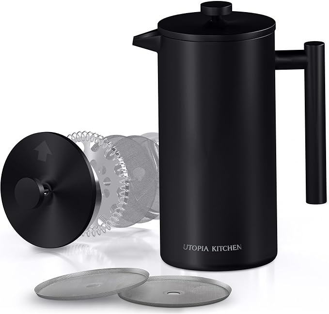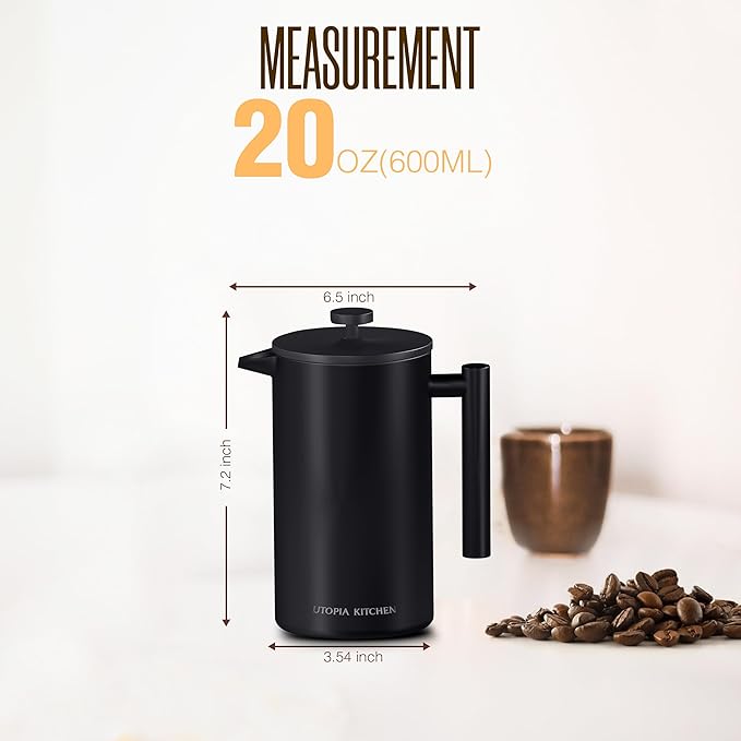 Utopia Kitchen Stainless Steel French Press Coffee Maker 21 Oz, French Press Tea Maker, Cold Brew Portable Travel Coffee Presses, Tea Press Gifts Black