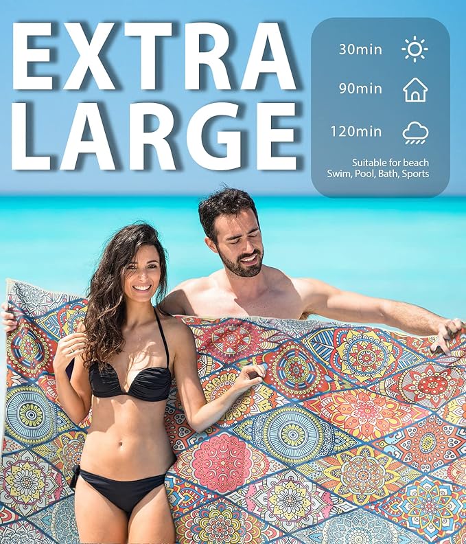 - ☀️[ Microfiber Lightweight ] High quality microfiber that absorbs water much faster than ordinary fabric! Eco-friendly, no faded and no smell. You can easily take it portable to avoid wet and cold on the beach. Perfect size for adults or kids.