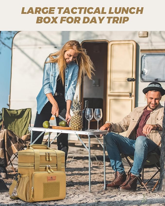 Expandable XLarge Tactical Lunch Box for Adults, Waterproof Insulated Lunch Bag with Lots of Storage Space, Durable Cooler Bag for Men Women Work Outdoor Picnic Trips, 22L(Brown), HSHRISH