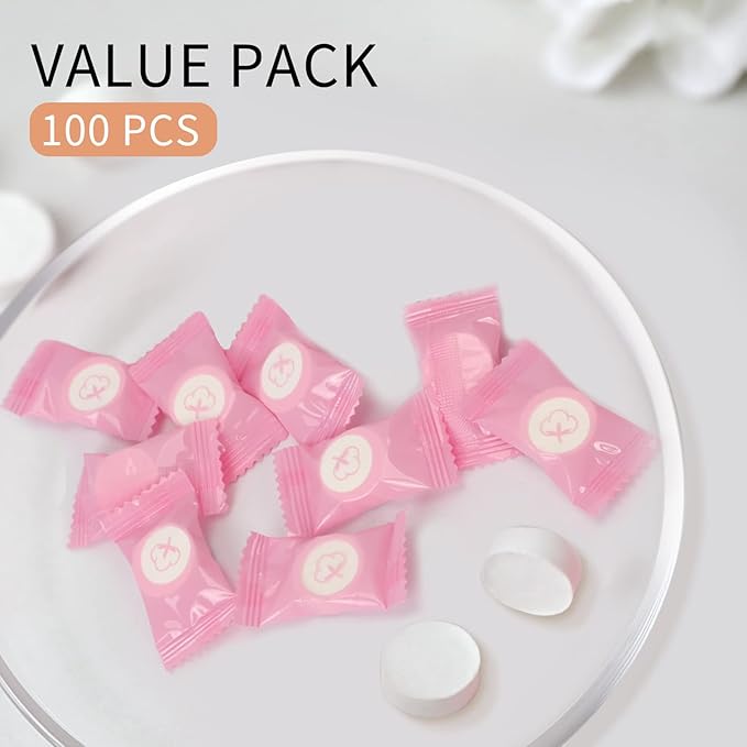 100PCS Compressed Face Towels, Portable Compressed Towel Tablets, Cotton Disposable Face Towel Coin Tissues, Mini Compressed Towels for Travel Camping (Pink)