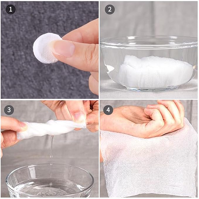 - 🌷 Easy to Use : Put the disposable face towel in cold or warm water for several seconds. It will be expansile and become a large towel.