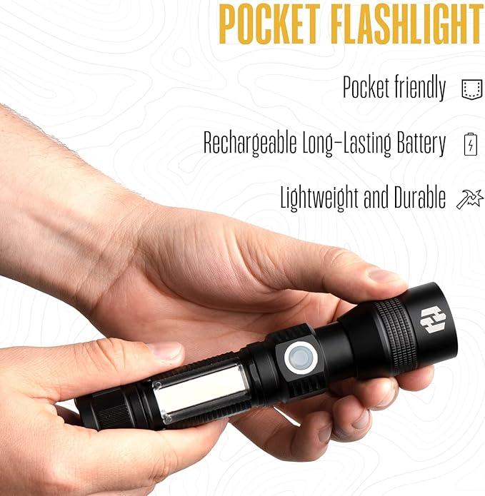 - USEFUL FOR EMERGENCIES- This EDC flashlight is rechargeable with a long-lasting battery life, so it can be helpful in emergencies like a power outage or places where power is unavailable.