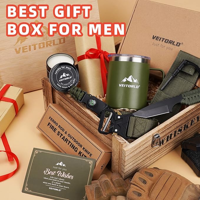 - Perfect Gifts for Men: Unsure what to get for Christmas, Valentine's Day, Father's Day, or a birthday? The Veitorld men's gift basket is the perfect choice, filled with fun and unique products for his needs. Who can resist it