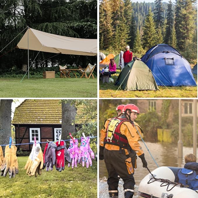 - 🍒 MULTI-USE - Tent guide rope can be used for camping hiking tents, camping clothesline, tarp hammocks, umbrella backpacks, cycling, fishing, hunting. It is an essential accessory for outdoor activities