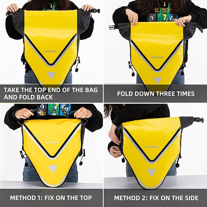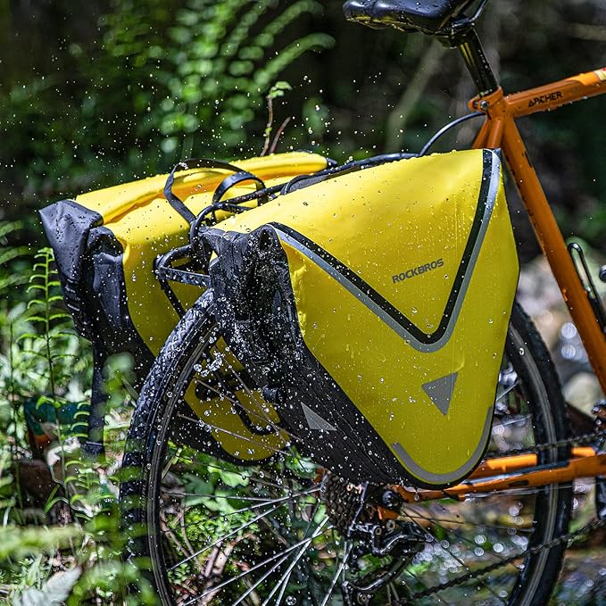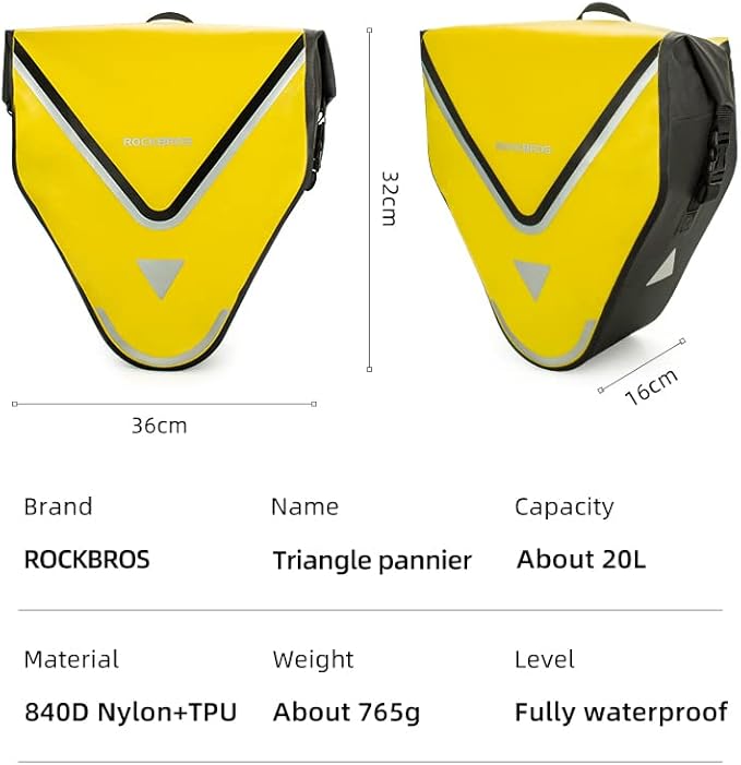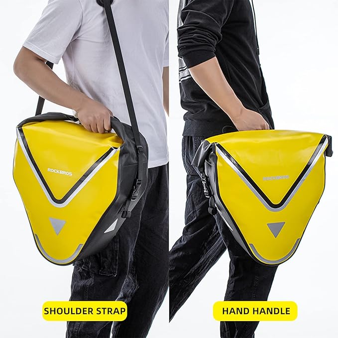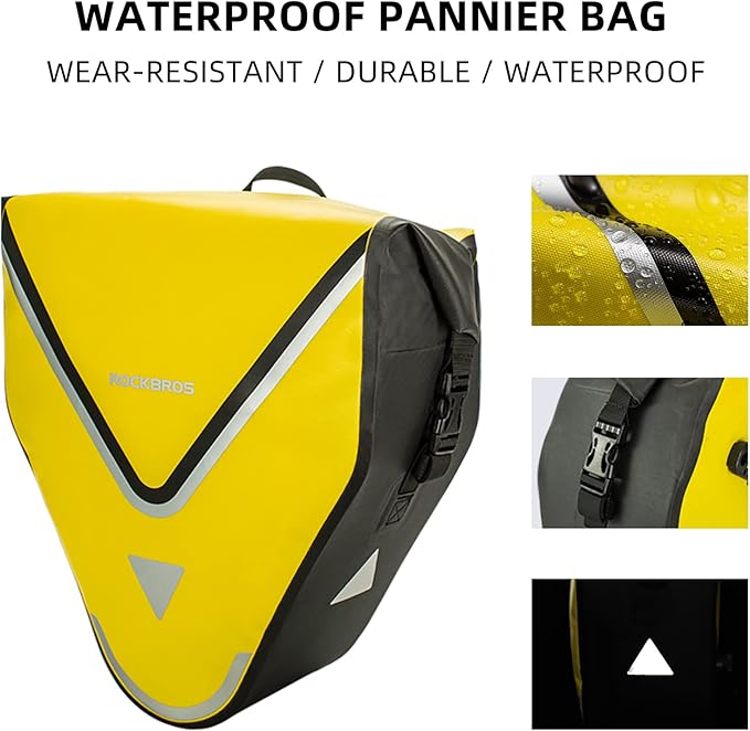 ROCKBROS Bike Pannier Waterproof 27L Large Capacity Bike Bag Rear Rack Bicycle Pannier Bag Waterproof for Grocery Touring Cycling Triangle Yellow*1