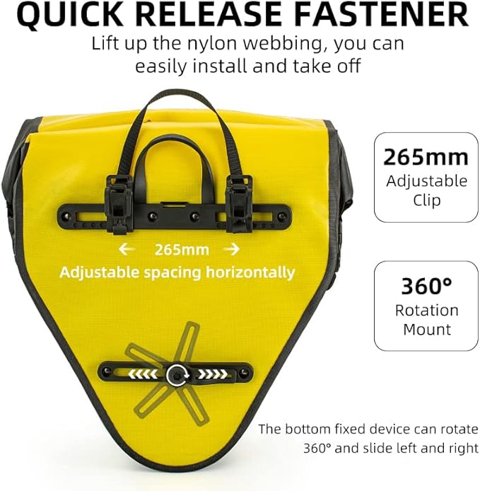 - FULLY WATERPROOF: This bike panniers was made with 840D nylon material and TPU coating on the surface ensures the well waterproof performance for you, do not worry about getting caught in the sudden rain or storm.