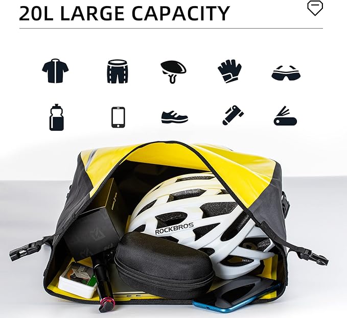- 20L LARGE CAPACITY: Each bicycle pannier are of 20L capacity, enough apace for your short-distance trip, could holds your change of clothes or some essentials. Also suitable for daily commuting or transport groceries.