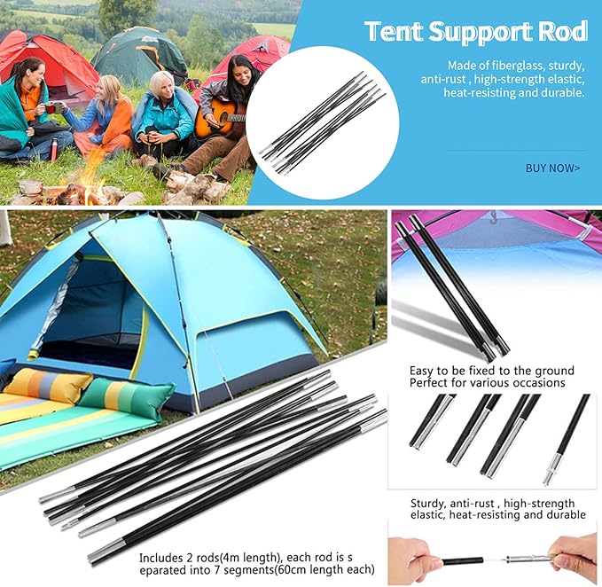 - 【Stable and 】Replacement tent pole is made of high quality fiberglass materials. It is stable and , lightweight, has good stability and pressure resistance, and has long service life; High-strength poles create a strong frame for your tent