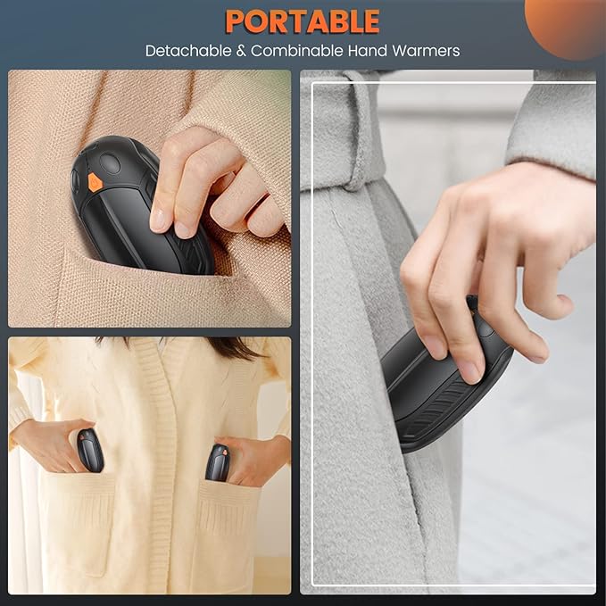 - 🔥【Safety & Portable Hand Warmer】Hand warmers have built-in intelligent protection system, high-precision chipset prevents hand warmers from overheating and scalding your hands. Hand warmer is slim and light enough to fit in your pocket or glove, it’s very portable to take it anywhere. Such as skiing, running, camping, traveling, etc.