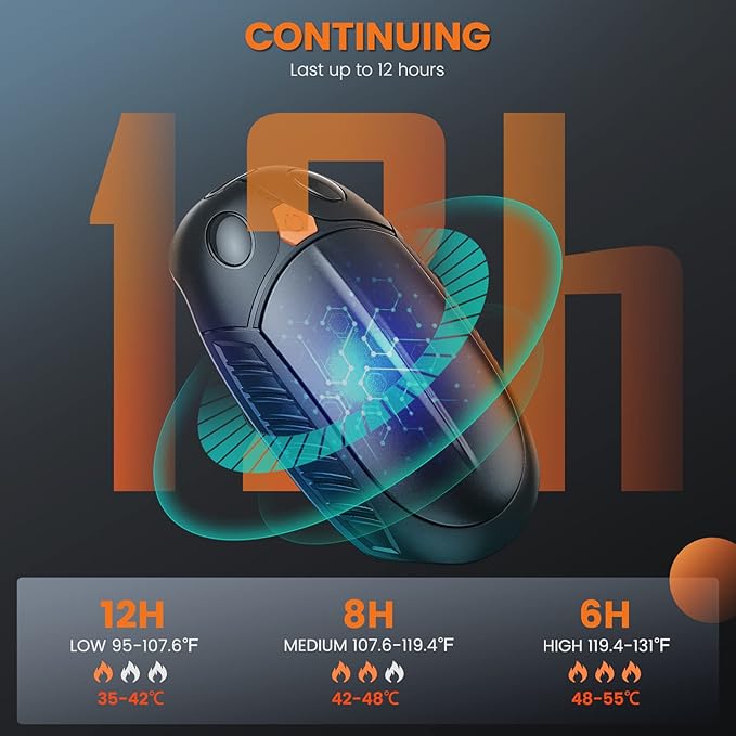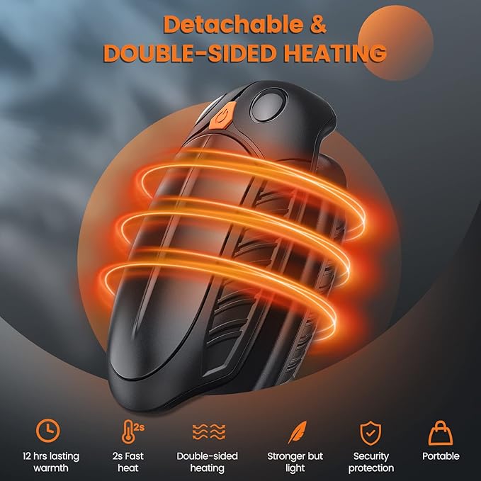 - 🔥【2s Fast Heating & Longer Lasting Warmth】Hand warmer is equipped with high performance heating plates, which warmer than others and feels warm in just 2s. Hand warmers provide continuous heating for up to 12 hours, it is your ideal winter companion to keep you from the cold all winter.