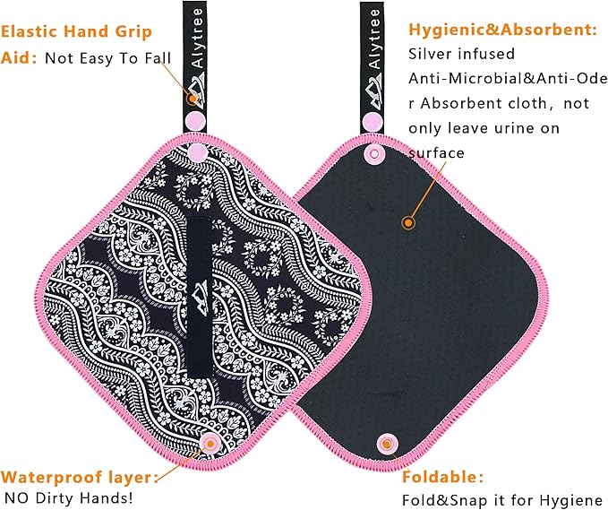 - [Safety & Health]:The pee rag is made from silver-infused textiles which can inhibit growth of Harmful substance and bad odor, and will greatest protect to female skin.(please wash regularly and dry it in the sunny place).
