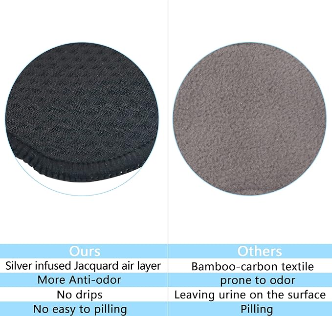 - [Reusable & Odorless]:it is odorless after reusable.unlike others in the market with urine odors after use.(please wash regularly and dry it in the ventilated place).