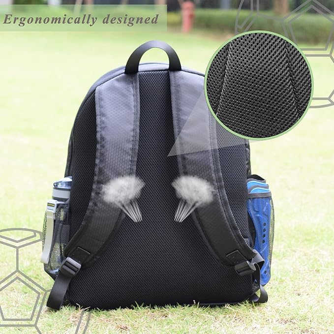 - 【Comfortable Carrying】The sandwich mesh material on the back and straps of this soccer bag provides breathability and heat dissipation, making it comfortable to carry even during long periods of use