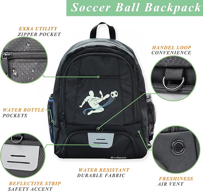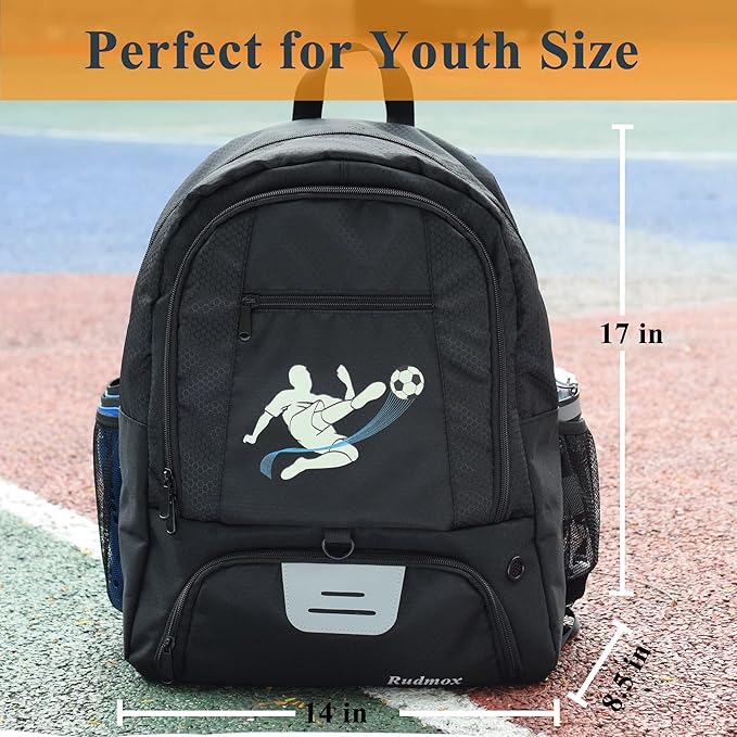 - 【Versatile Pockets】The soccer backpack inside has a sleeve, it can hold 13-17inch laptops or sports cloths, as well as has extra two pockets, allow you to keep pens, notebook, keys, wallets or other belongings
