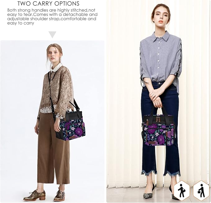 MIYCOO Lunch Bag for Women Men Double Deck Lunch Box - Leakproof Insulated Soft Large Lunch Cooler Bag, (Purple Flower,15L)