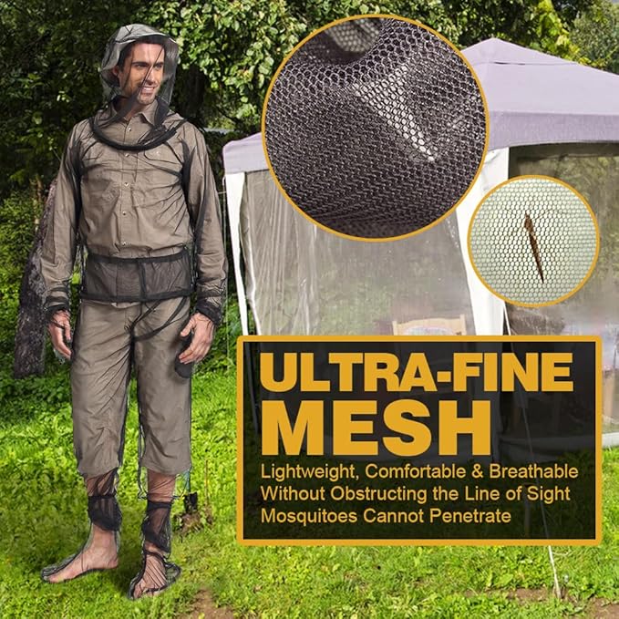 - 【Breathable Translucent Net Suit】Netting clothing made of durable lightweight polyester no-see-um mesh for outdoor activities. Jacket is breathable and non-toxic, giving you a lot of freedom to move freely and naturally. You might even forget that you’re wearing it!