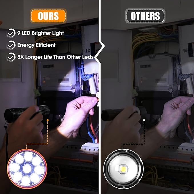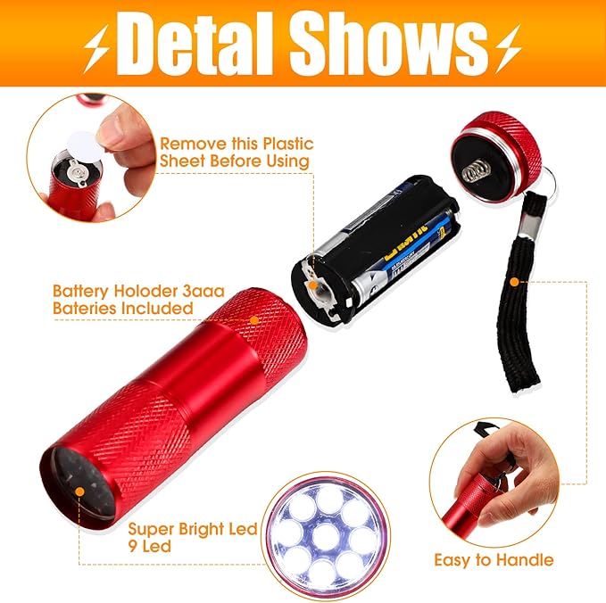 - Lighting Pocket Flashlight: our handheld flashlights are equipped with 9 LED lights in each, can provide ample light beams and are useful to use when you are walking at night, suitable for camping, reading or other activities in the dark; Please don't direct contact with eyes and skin while using it to avoid unnecessary harm