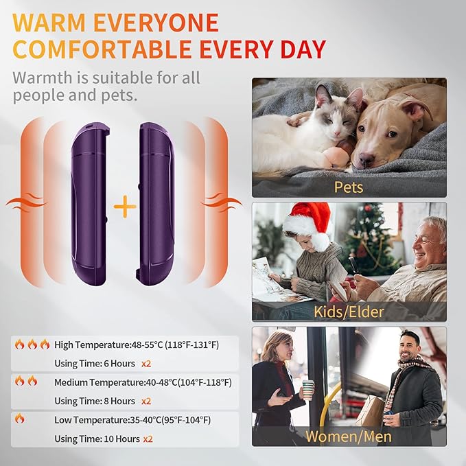 - π₯2s FAST HEATING&SAFETY - The 2-Pack hand warmer eliminates the need to cool your hands, the three-speed adjustable hand warmer can quickly heat up to 131β, providing up to 15 hours of heat, especially suitable for the hyperthermia needs of patients with Raynaud's arthritis.