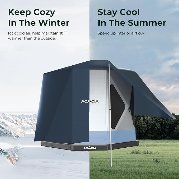 - All SEASON COMFORT: Generously sized canopy casts expansive cooling shade in summer, allowing hot air to pass through the tent and exit via the canopy, ensuring you stay cool in the heat. It acts as an extra insulation layer in winter, effectively raising the interior temperature by 10°F compared to the outside.