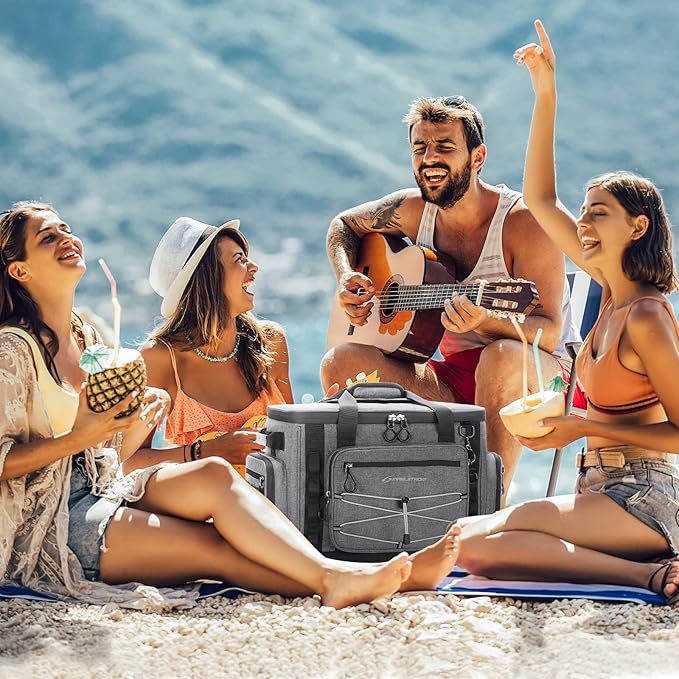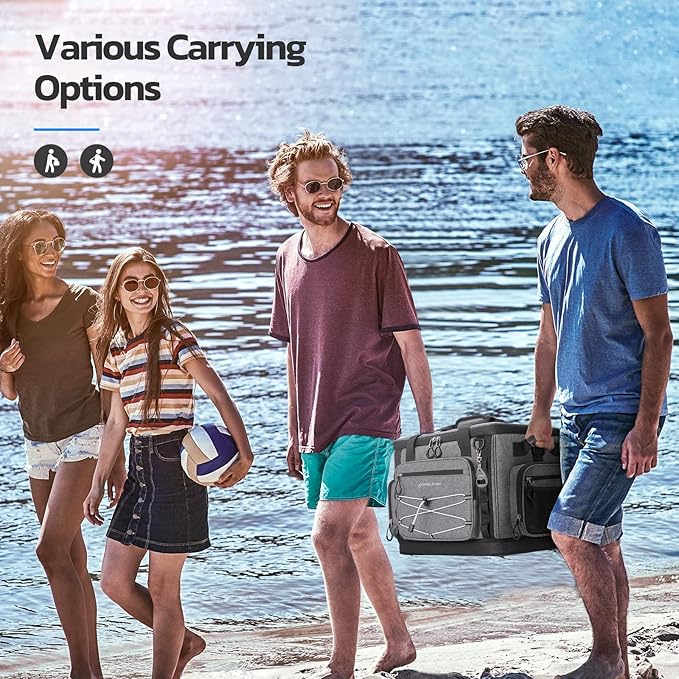 - Convenient and Portable: With the unique Velcro opening design, you can easily access to your drinks without opening the zipper. Detachable and adjustable straps, comfortable top handle allow you to hold Maelstrom leakproof cooler bag by hand or shoulder. You can also carry the large ice chest with your friends together with 2 side handles.This portable can cooler can be widely used when you go camping/hiking/Grocery Shopping/Kayaking/Road Trips.