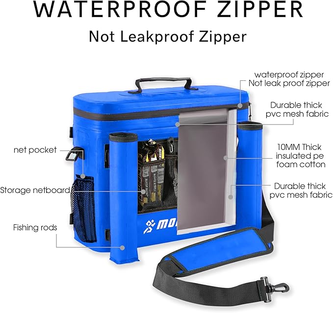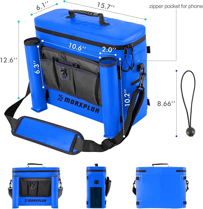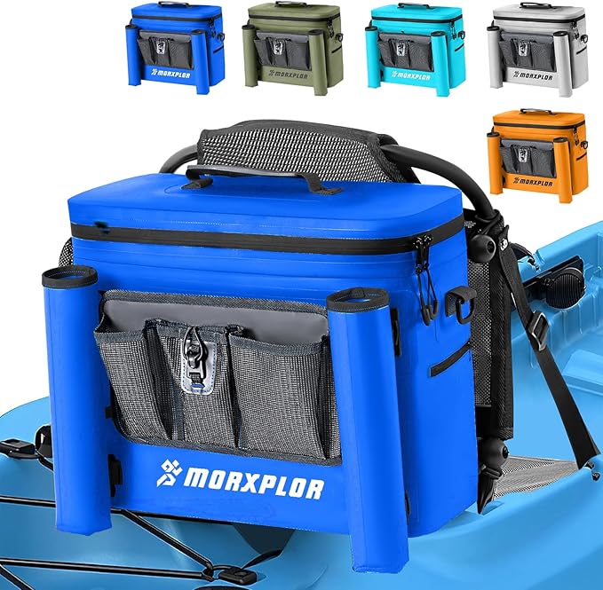 - 【Strong electroweld Structure】Morxplor Seat Back Kayak Cooler Waterproof Zipper and Waterproof Material Protect From Rain Splashes. Simply attach the bungee cord to securely attach seat cooler bag for kayak seat and fit all models of lawn chair seats. Removable storage pockets can hold keys, cell phones and fishing rods.