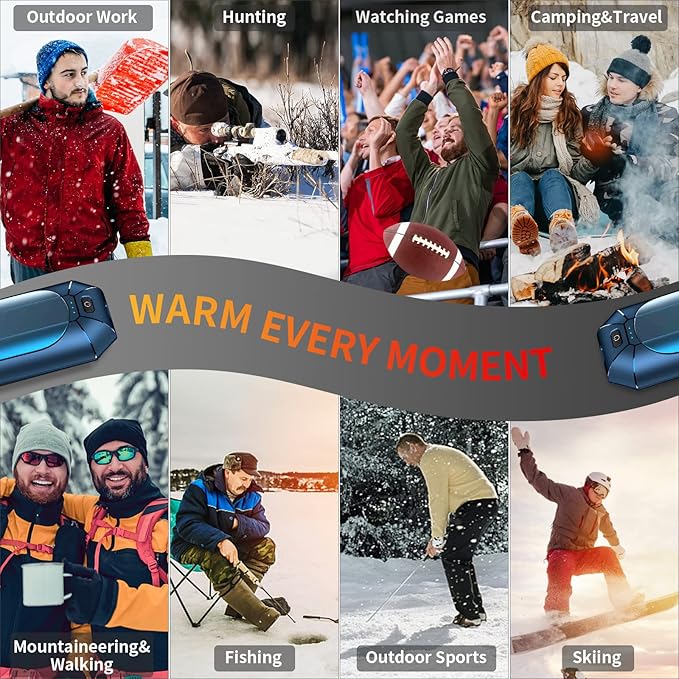 - π₯24-HOUR CONTINUOUS USE - The upgraded portable hand warmer can be divided into two or combined into one, and the flat hand warmers can be separated into hats, gloves, clothes, stockings, etc. The two can be used alternately to bring warmth throughout the day.