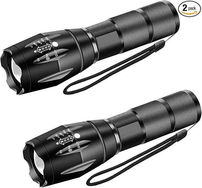 2 Pack Military Grade Single Mode High Lumens Led Tactical Flashlight for Outdoor Camping Hiking Emergency