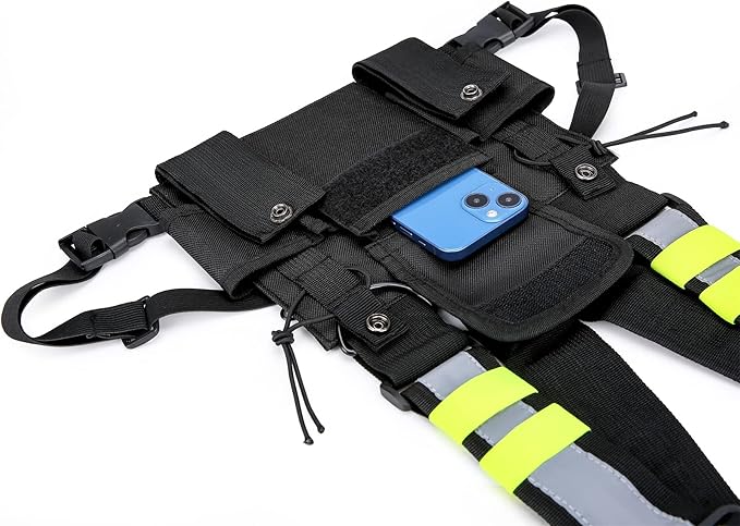 Versatile Chest Bag Vest Rig For Two Way Radio Walkie Talkie Universal Hands Freely Front Chest Pack Pouch For Running With Phone Holder Hiphop Harness Bag (Upgrade Black)