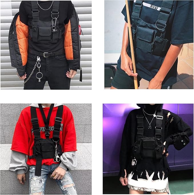 - 4) Many people use this chest vest Rigs for hiking, biking, work, school, cycling, fishing, traveling.
