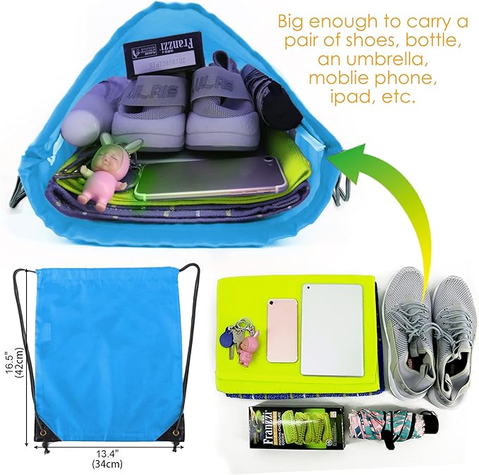 • 【DURABLE】Our draw string bag is made from polyester fabric, so they are shape-retaining strongly. You can fold them up when not in use, and they won't take up much space when folded, and they still look like new next time you use them. And the sewing of the drawstring bags is strong, which makes them more sturdy to hold heavy stuff safely and not easy to tear, the drawstring backpack can last for years, it can store your things when you don't want it.