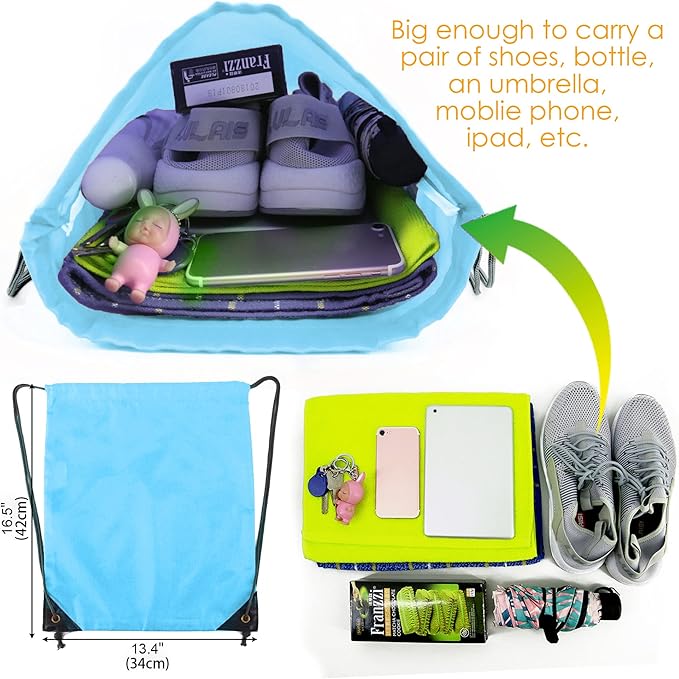 - 【FIT SIZE & LARGE CAPACITY】: The drawstring bags measure w 13.4 inches * h 16.26 inches which are big enough for carrying a variety of items, and perfect for everyday use. Great size for adults to carry around water bottles, clothes, sports shoes, accessories, small electronics, snacks, etc. Our gym backpack is also an ideal choice for a birthday party, fair prizes, carnival, construction giveaways, and so on.