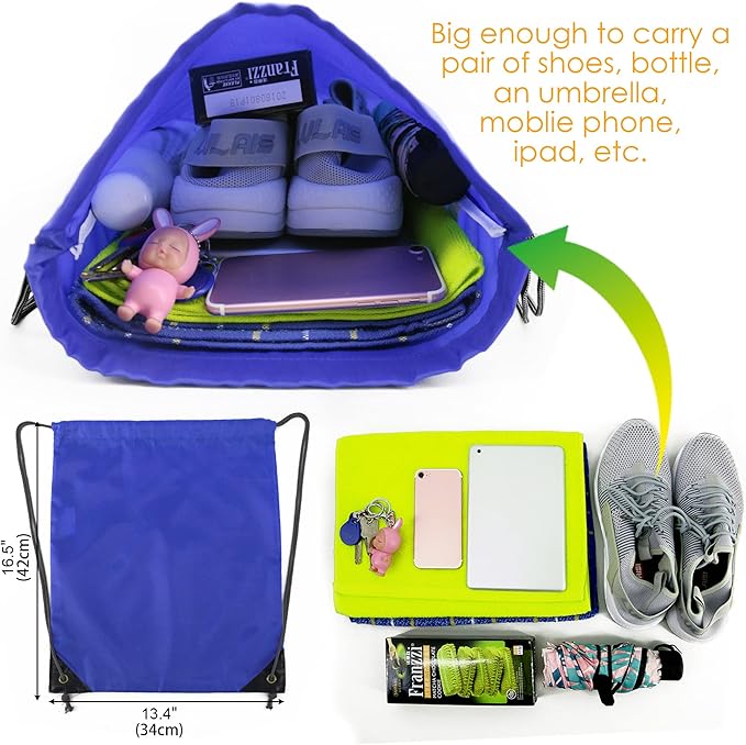 - 【FIT SIZE & LARGE CAPACITY】: The drawstring bags measure w 13.4 inches * h 16.26 inches which are big enough for carrying a variety of items, and perfect for everyday use. Great size for adults to carry around water bottles, clothes, sports shoes, accessories, small electronics, snacks, etc. Our gym backpack is also an ideal choice for a birthday party, fair prizes, carnival, construction giveaways, and so on.
