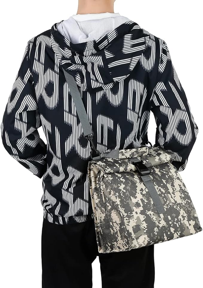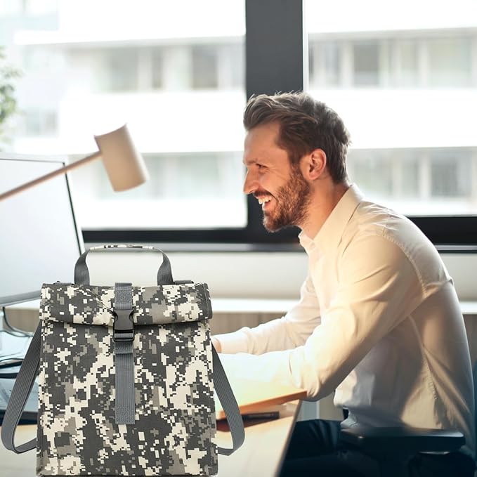 Insulated Lunch Bag for Men/Women/Kids, Roll top Reusable Lunch Box with Adjustable Shoulder Strap, Thermal Lunch Cooler Tote Container for Adults/Teens School Work Office Picnic,Black,Camo