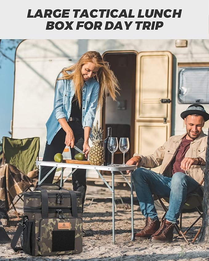 Expandable XLarge Tactical Lunch Box for Adults, Waterproof Insulated Lunch Bag with Lots of Storage Space, Durable Cooler Bag for Men Women Work Outdoor Picnic Trips, 22L(Black-Camo), HSHRISH