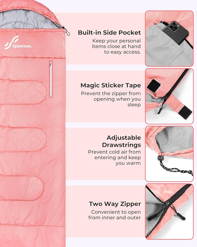 - Innovative Bottom Zipper Design: Wish to spend the entire day in a cozy sleeping bag? Well, consider it done with Sportneer sleeping bag for adults. The ingenious bottom zipper design allows you to walk around and stretch your hands out for reading. This adult sleeping bag allows you to keep your warm and snug while still enable the freedom to use your hands. Perfect companion for camping trips, family vacations, or even for office use.