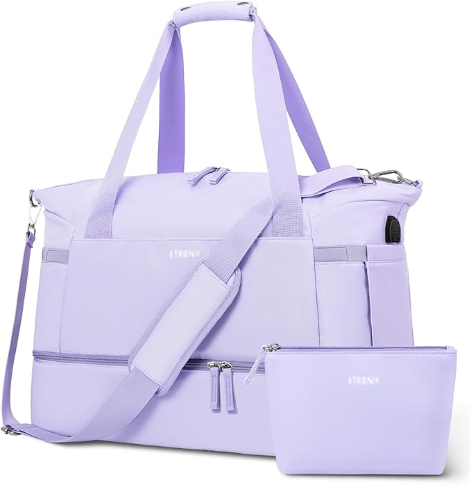 ETRONIK Gym Bag for Women, Travel Duffel Bag with USB Charging Port, Weekender Overnight Bag with Wet Pocket and Shoes Compartment for Women, Travel, Gym, Yoga (Purple)
