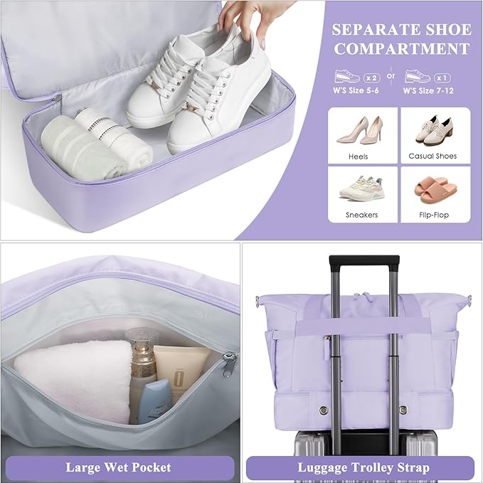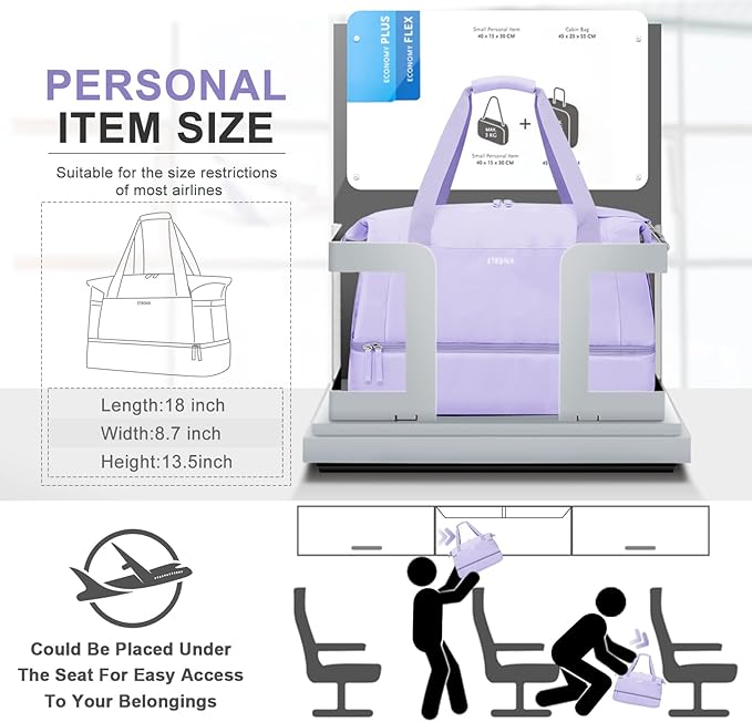 - Wide Application Gym Bag:A perfect choice for carrying all your gym and travel essentials. Use it as an airplane personal item bag, luggage bag, gym sports bag, weekend bag, carry-on bag, beach bag. This women's gym bag is suitable for both indoor and outdoor sports, such as travel, sports, weekend trips, yoga, gym, beach, business or other daily use