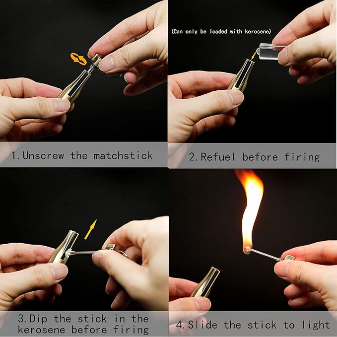 - ✅【Fire Starter】The flint match lighter does not contain oil(only kerosene oil) and must be refueled before use, Only need to add a little bit of kerosene to use, about 1/5 of lighter, it does not need to add more.